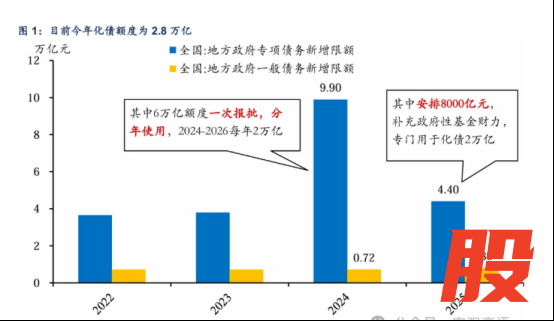 目前今年计划用于化债的额度为“2万亿特殊再融资债”+“0.8万亿特殊新增专项债”。一季度特殊再融资债发行进度已达全年额度的67%,整体发行节奏呈现明显前置特征。特殊新增专项债一季度发行进度为全年额度的15%优先配,进度相对偏慢。两部分化债资金合计约1.46万亿,占地方债券发行总额的51%,尽管特殊新增专项债这部分发行进度略慢,但整体的化债发行进展较快。