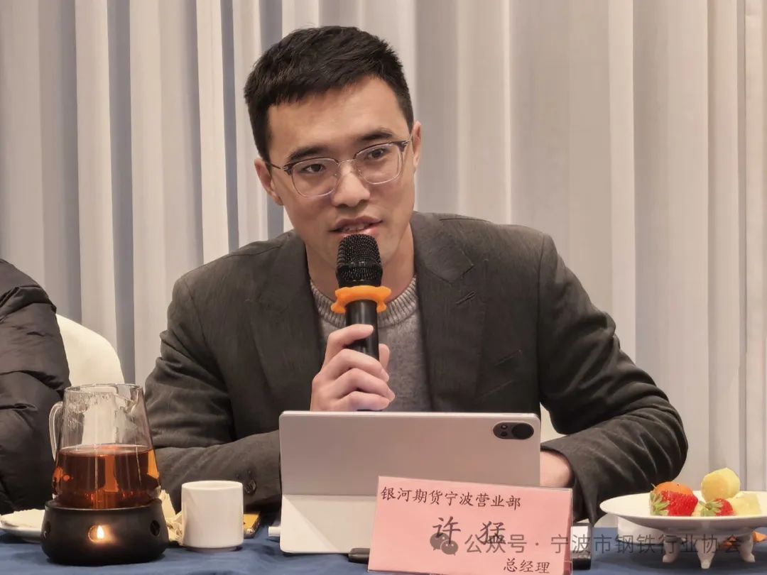 会议首先由秘书长张海峰向与会代表介绍本次出席嘉宾:上海钢联(300226)副总裁任竹倩女士、找钢网副总裁童亚明先生、上海钢联建筑钢材事业部总经理助理/分析师万超先生、银河期货宁波营业部总经理许猛先生和高级客户经理王荣先生满盈网配资。